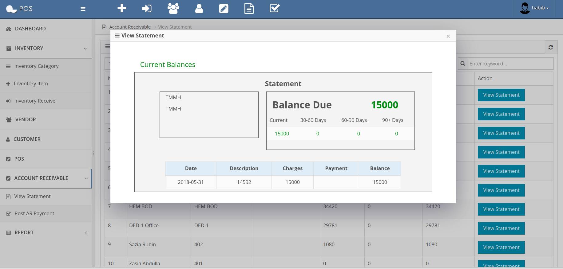 When any product is sold in due to any customer then customer view statement is listed by Account Receivable operation and when the customer pay the due then the customer view statement is removed.