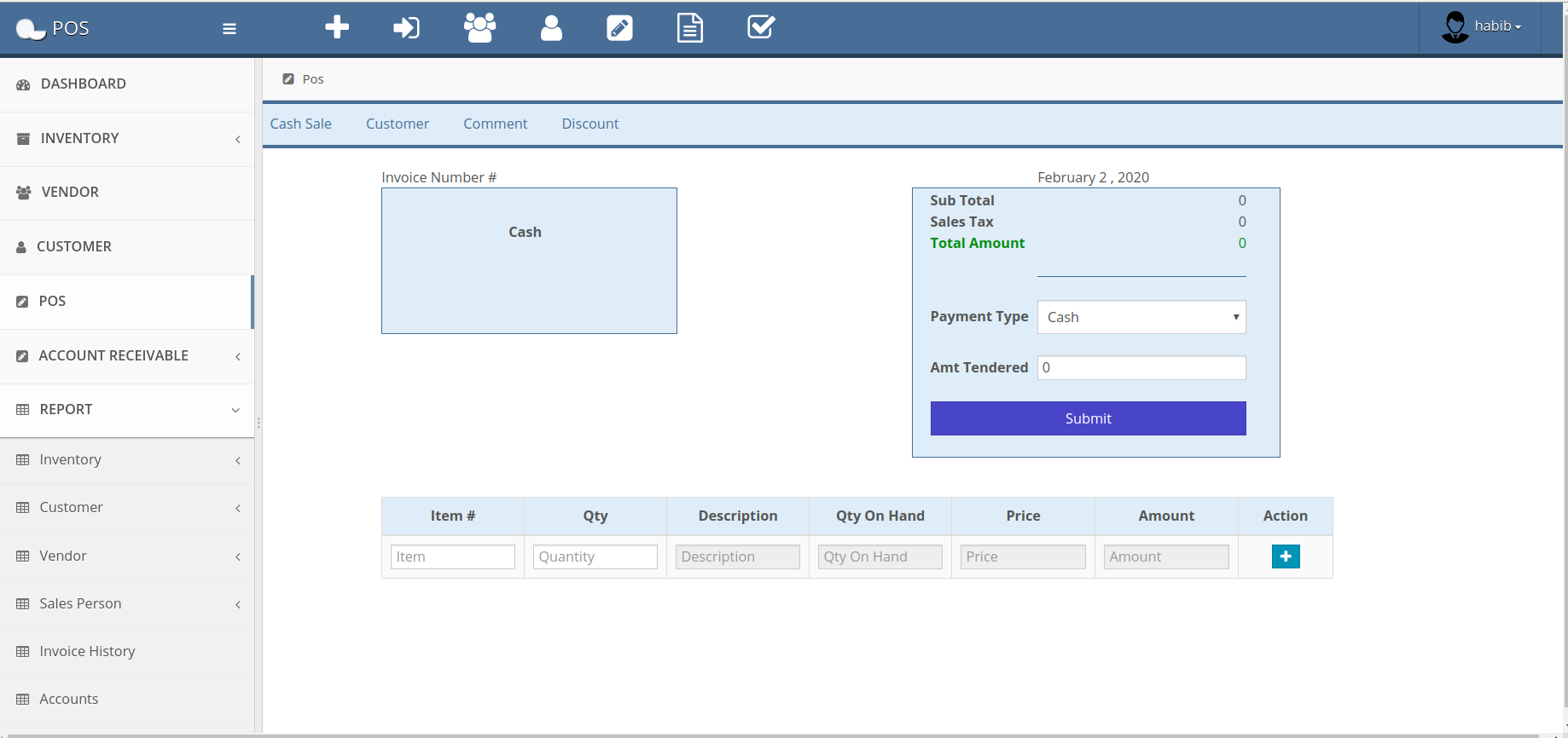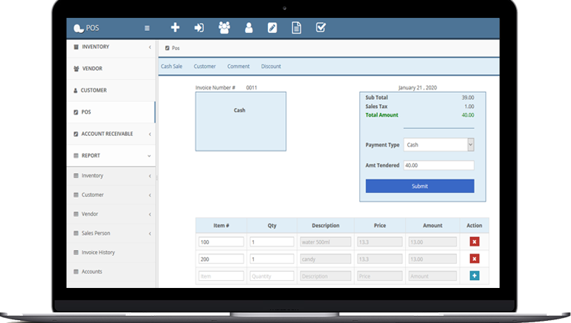 In pos operation all kinds of product that are stored in stoke can be sold in cash or due with quantity and the invoices are automatically generated